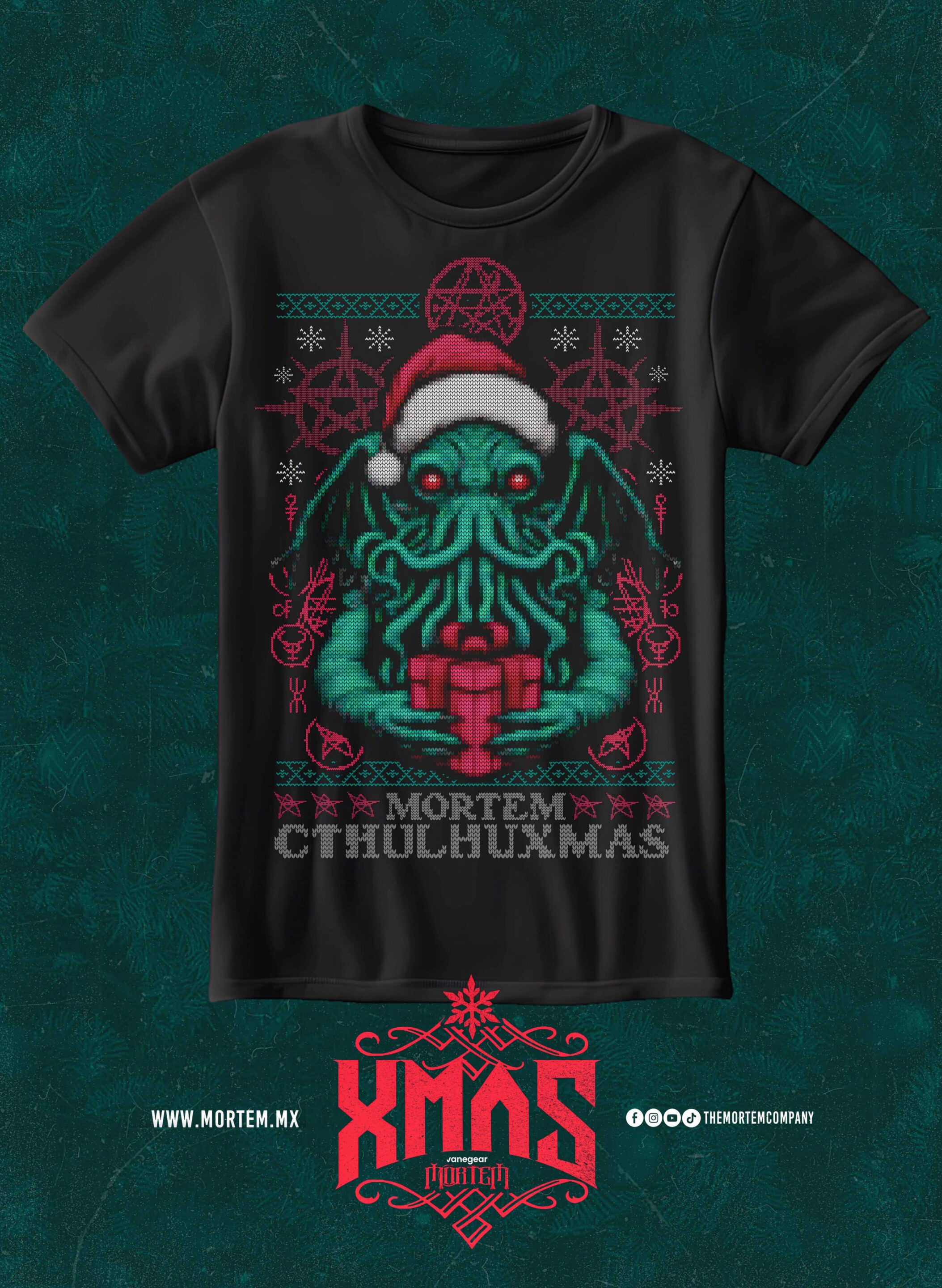 Playera edición especial de Mortem Antichristmas – Ugly Sweater Cthulhu.